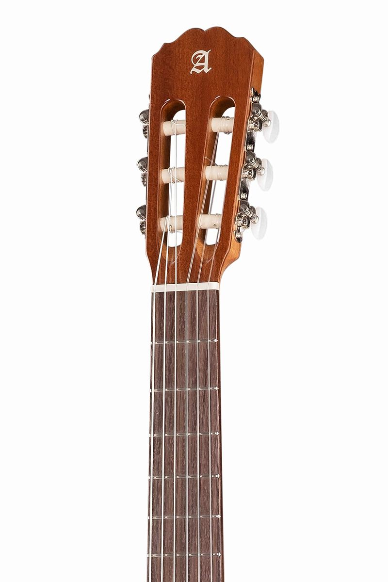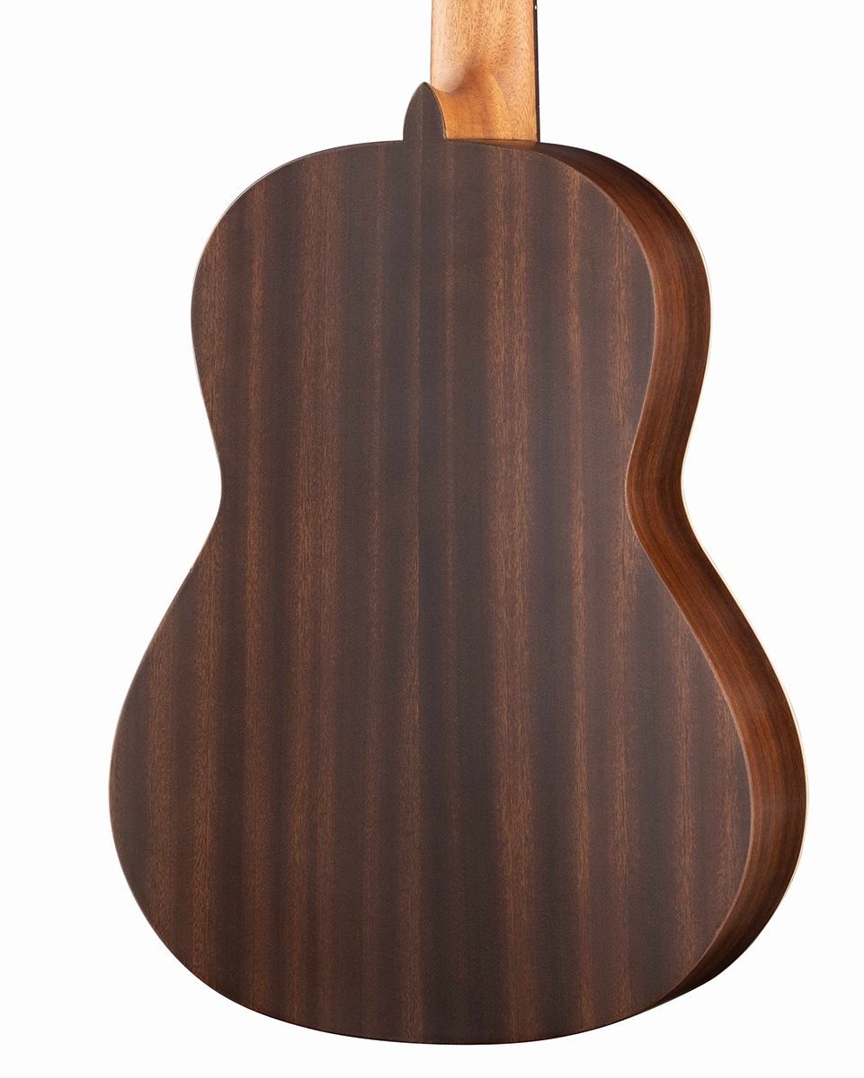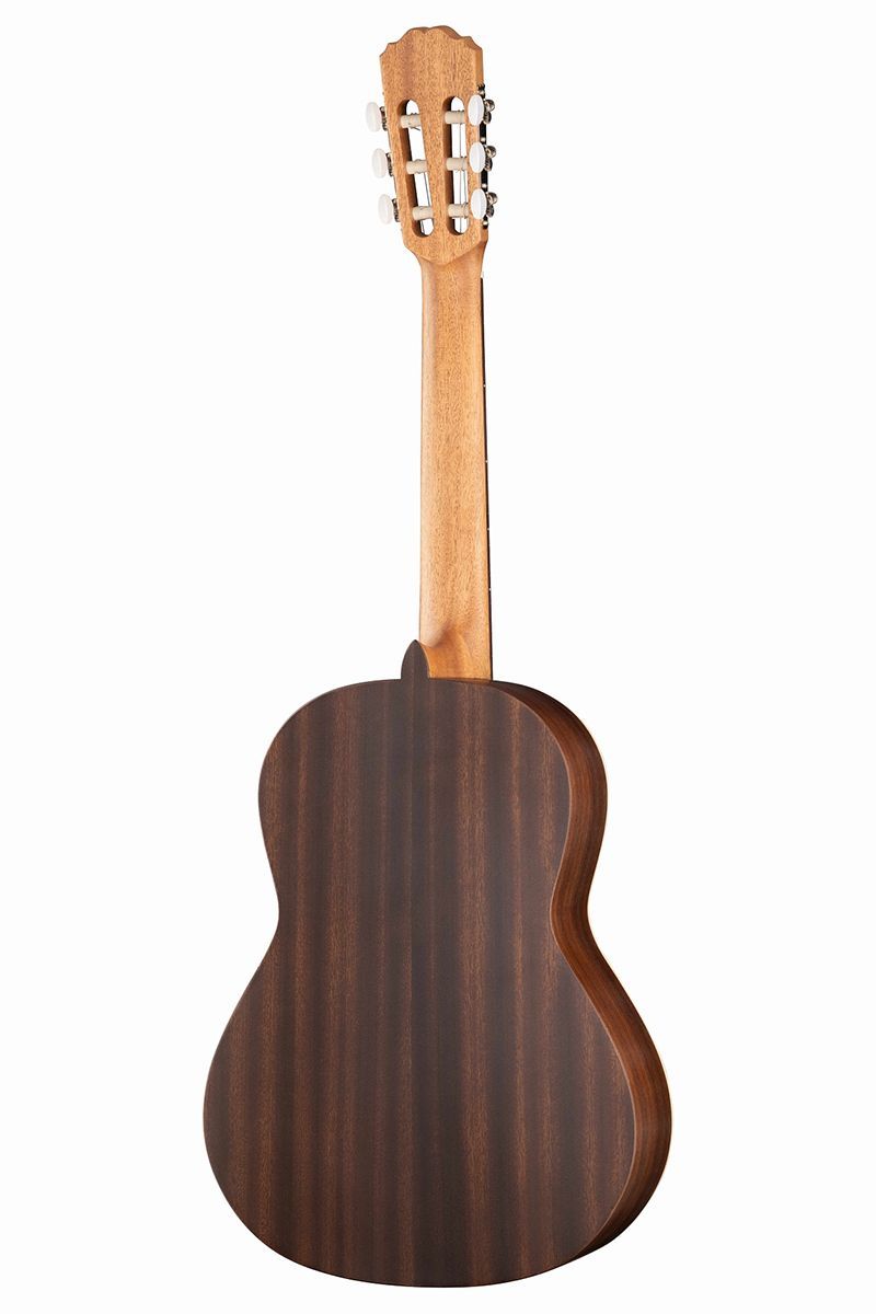 Как и все модели Alhambra, гитара изготовлена вручную из отборных пород древесины. Для верхней деки использован массив кедра, а для обечайки и задней деки — красное дерево (сапели).