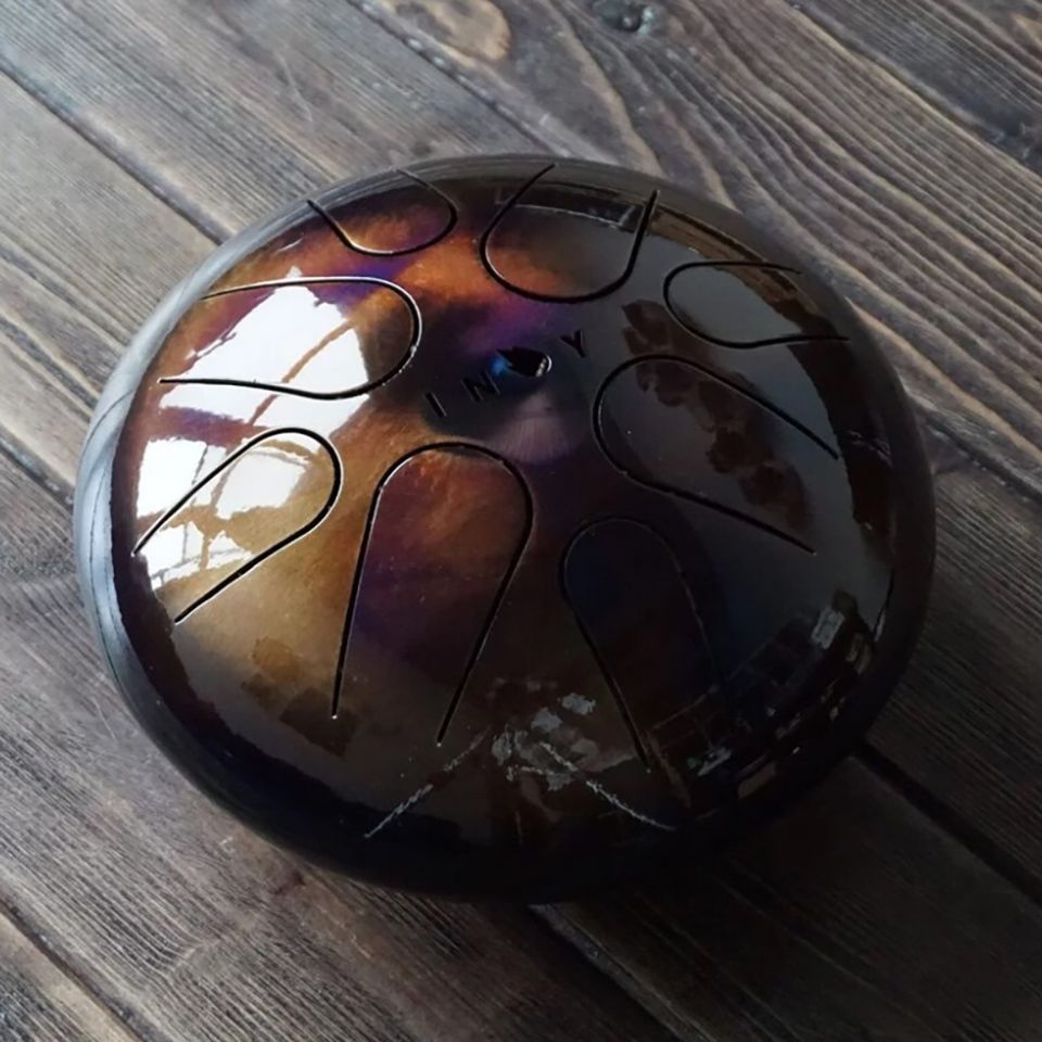 Современный музыкальный инструмент, очень популярный в мире. В разных уголках земли его называют по-своему: (steel drum-стил драм, hang drum- хэнг драм, tongue drum-тонг драм, happy drum-хэппи драм, tank drum-тэнк драм).